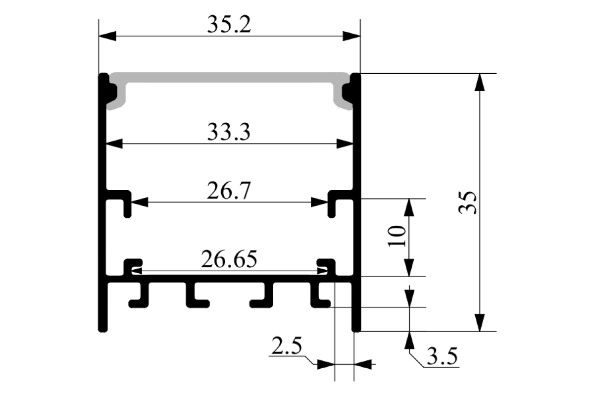 Алюмінієвий профіль для світлодіодної стрічки АЛ-84 2 метра RAL 7016 антрацитно-сірий накладний, підвісний LEDUA