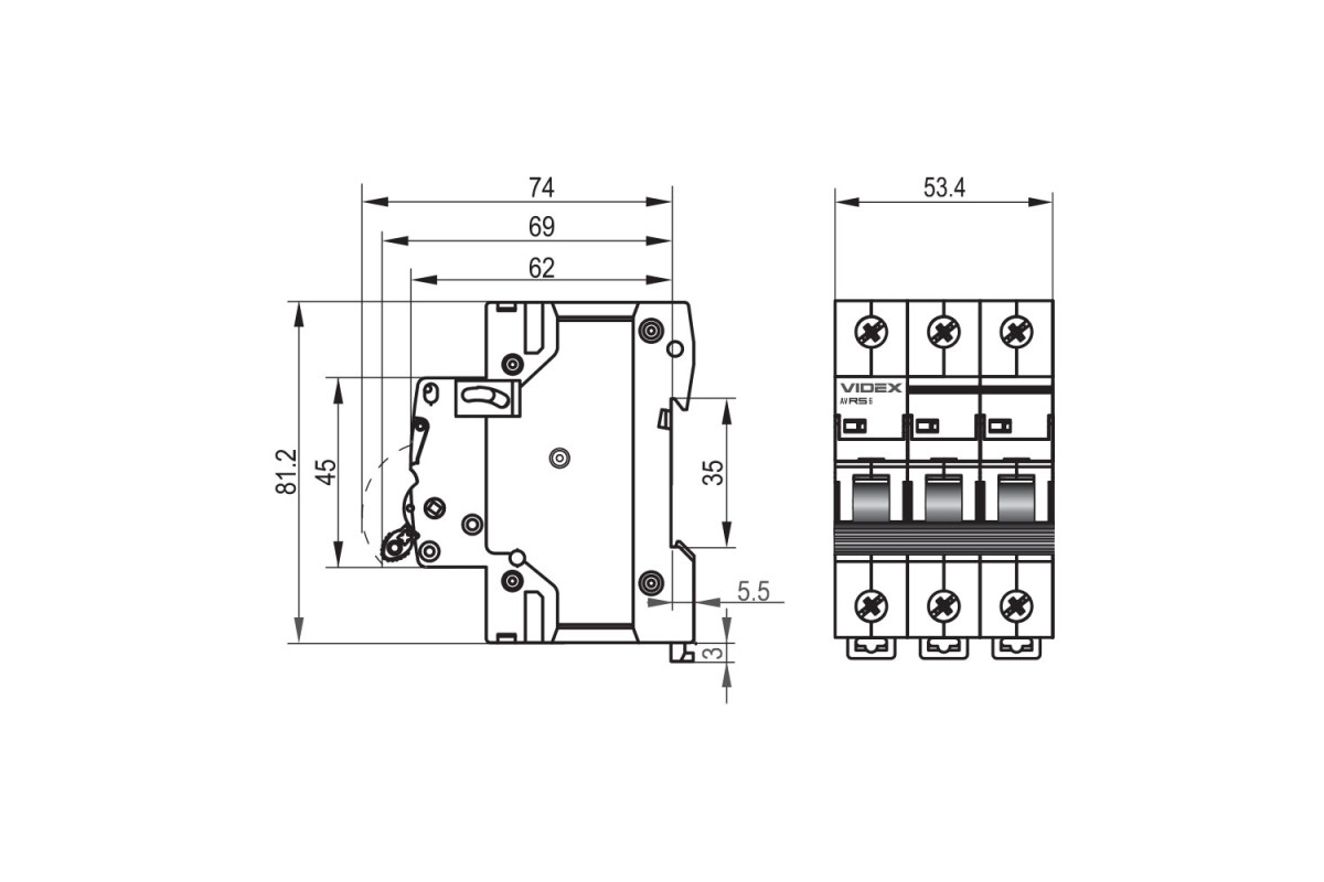 Автоматичний вимикач RS6 3п 6А 6кА С VIDEX RESIST