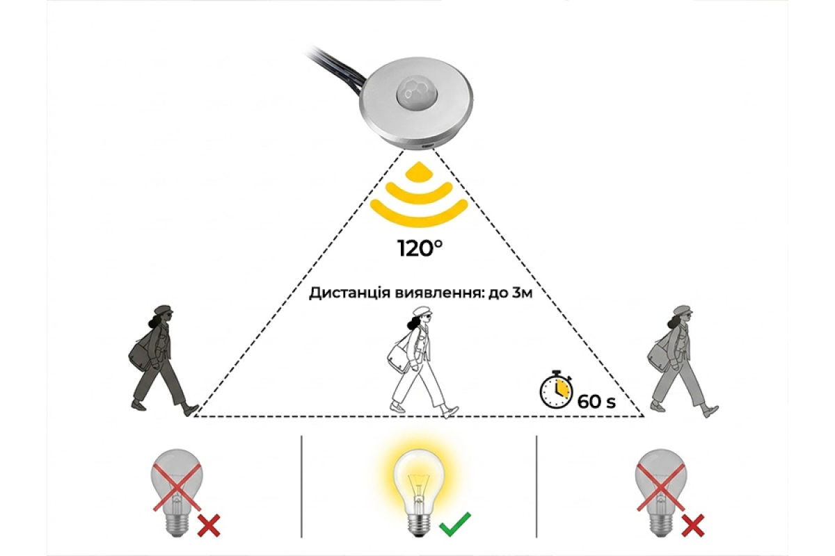 Кут виявленя: 120°