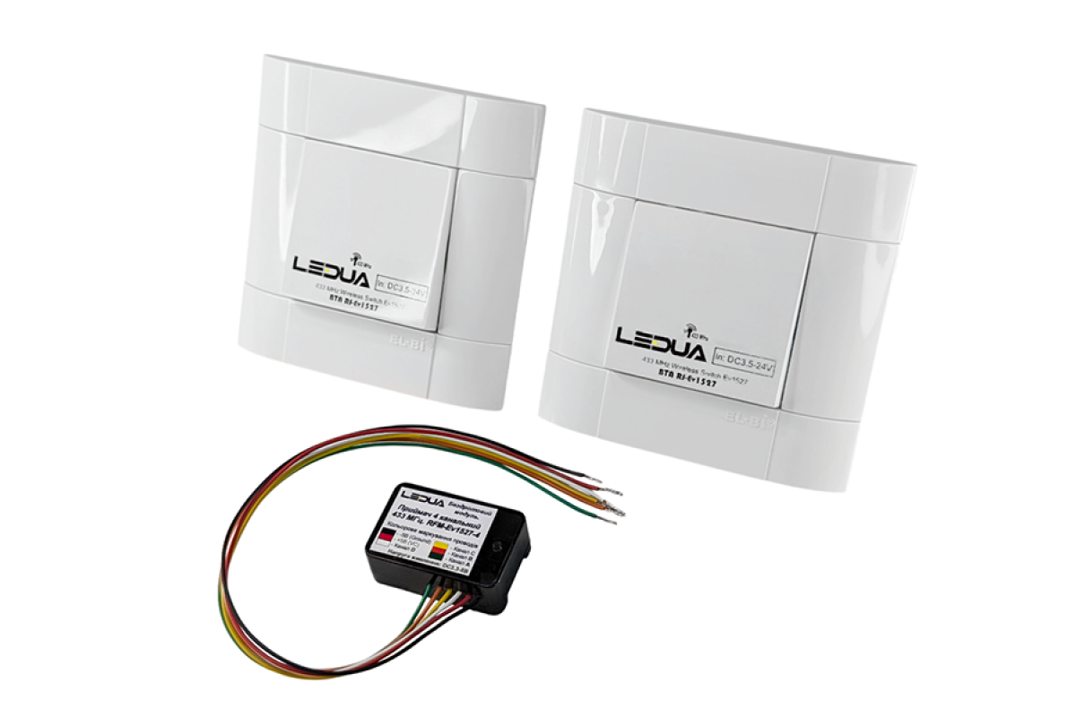 ❓ Яка ціна на Комплект бездротовий вимикач врізний 2шт BTN-ELRF+приймач 4х-канальний 433Мгц LEDUA у 2026 році?