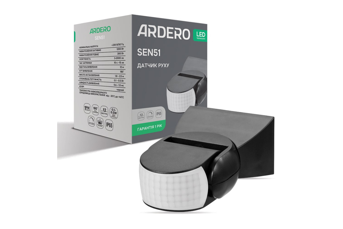❓ Як замовити Датчик руху інфрачервоний Ardero SEN51 чорний з доставкою?