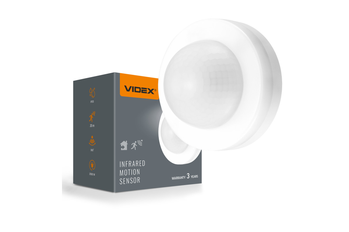 ❓ Як замовити Датчик руху та освітленості VIDEX VL-SPC46W 220V 2000W інфрачервоний білий з доставкою?