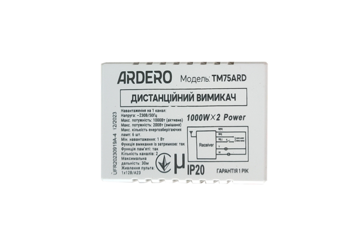 ❓ Хто виробник Дистанційний вимикач Ardero TM76ARD 3 канала?