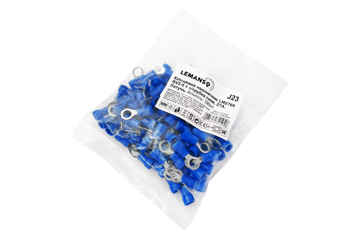 ❓ Яка ціна на Кільцевий наконечник RV2-5 + т/трубка (100шт) синій LM2769 Лємансо у 2025 році?