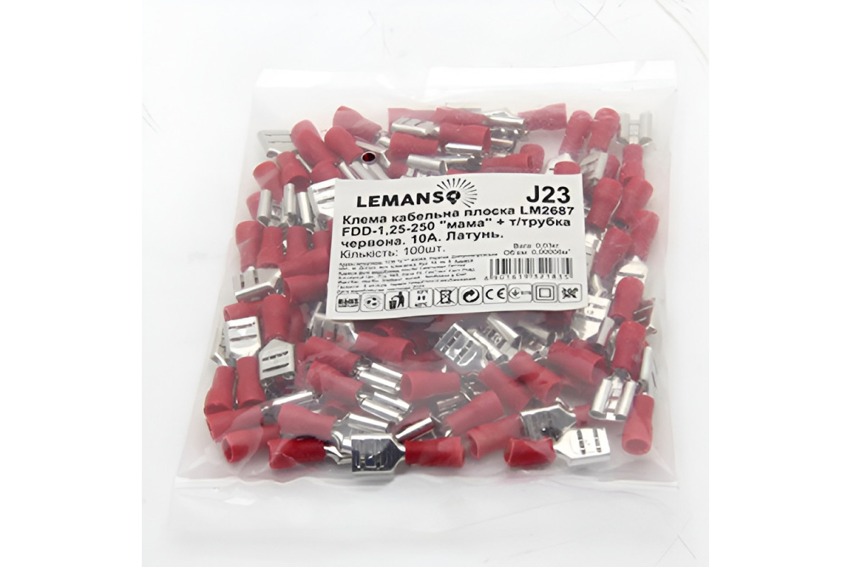 ❓ Хто виробник Клема кабельна плоска LM2687 Lemanso FDD-1,25-250 "мама" + т/трубка (100шт) червона?