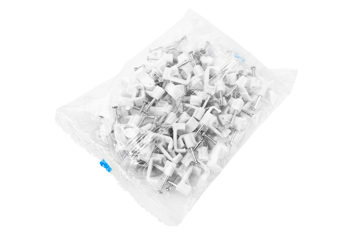 Кліпса кабельна 12x18мм плоска біла 100шт LMA2782 Лємансо