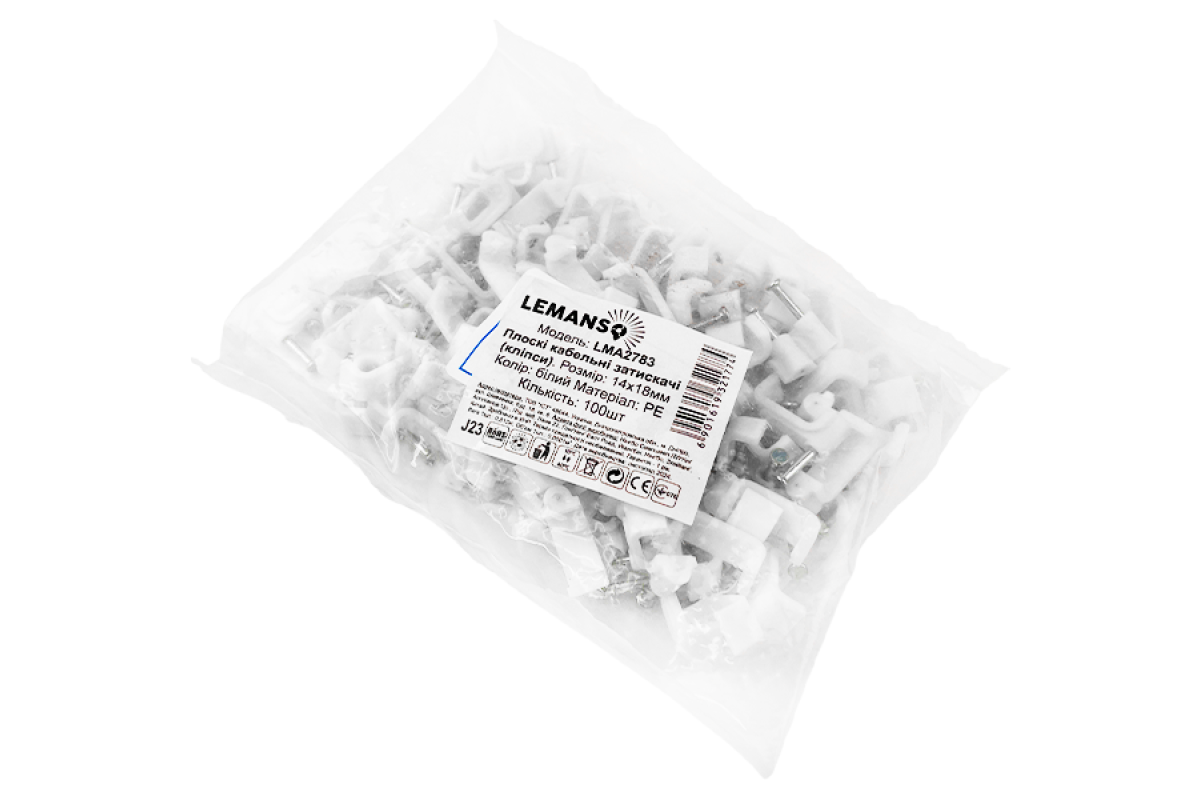 ❓ Хто виробник Кліпса кабельна 14x18мм плоска біла 100шт LMA2783 Лємансо?