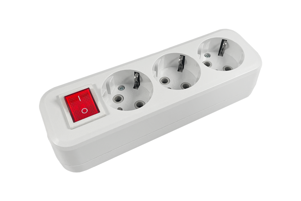 Колодка 3 гнізда з заземленням з кнопкою /LMK005 Лємансо