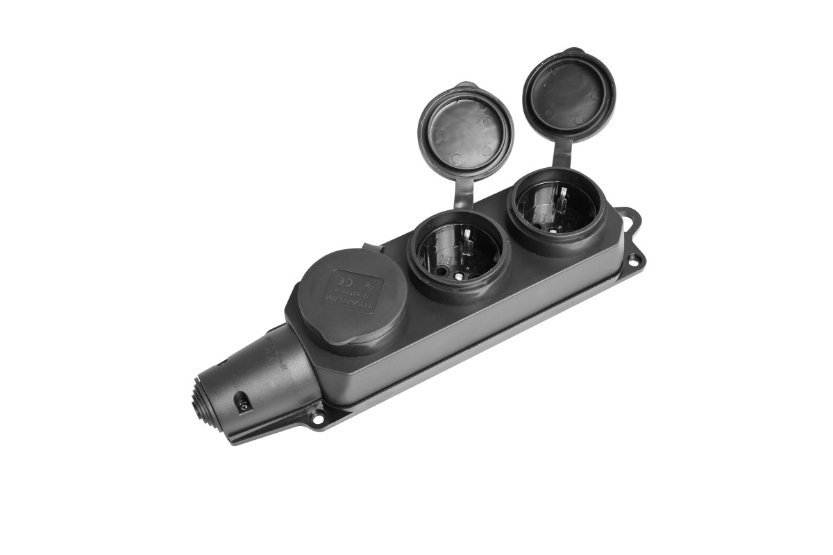 Колодка подовжувача IP44 із заземленням 3 гнізда 16А чорна TITANUM STANDARD