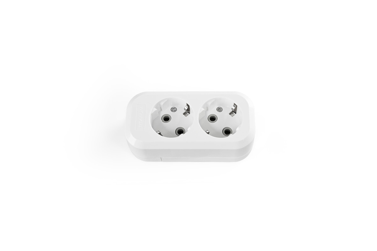 Колодка подовжувача із заземленням 2 гнізда біла TITANUM STANDARD