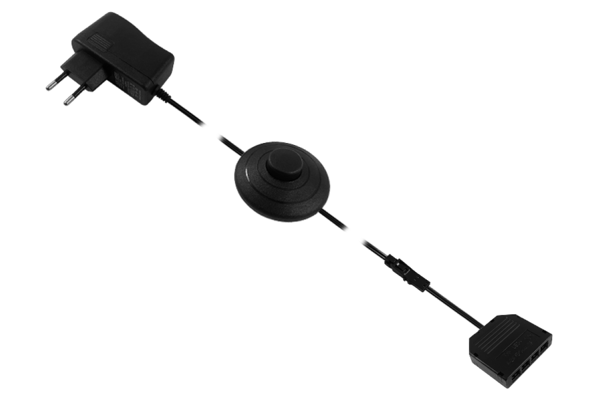 Комплект драйвер 12W+ножний вимикач+розподільча коробка 4 виходи, чорний 12V LEDUA