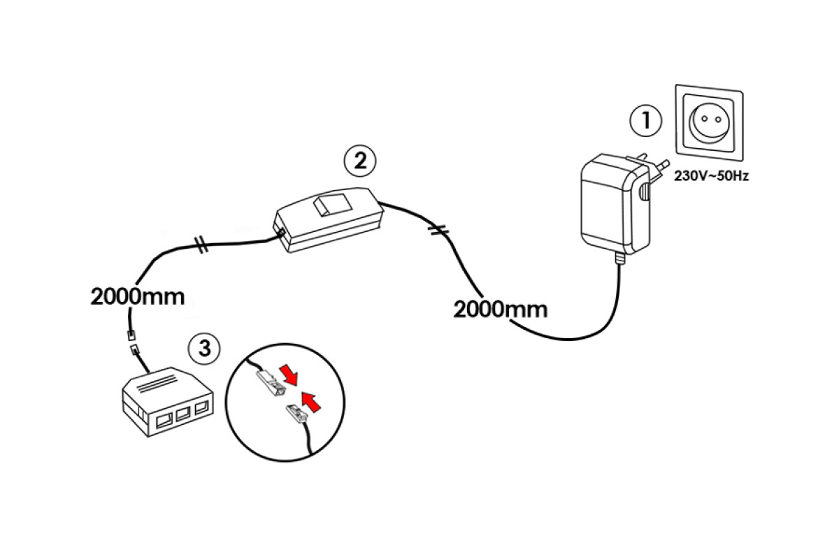 Комплект драйвер 24W+ручний вимикач+розподільча коробка 3 виходи, білий 12V LEDUA