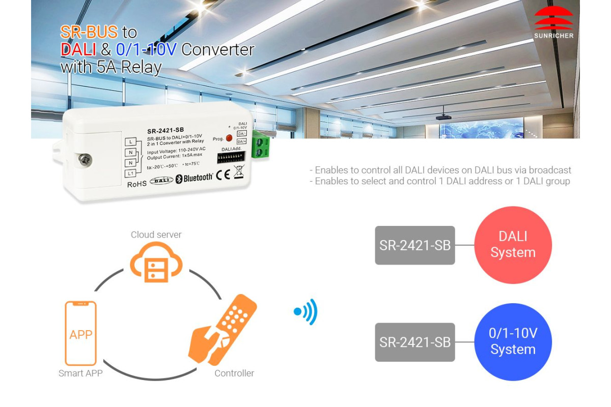 Конвертер-шлюз SR-2421-SB (Bluetooth+RF to DALI+1-10V)