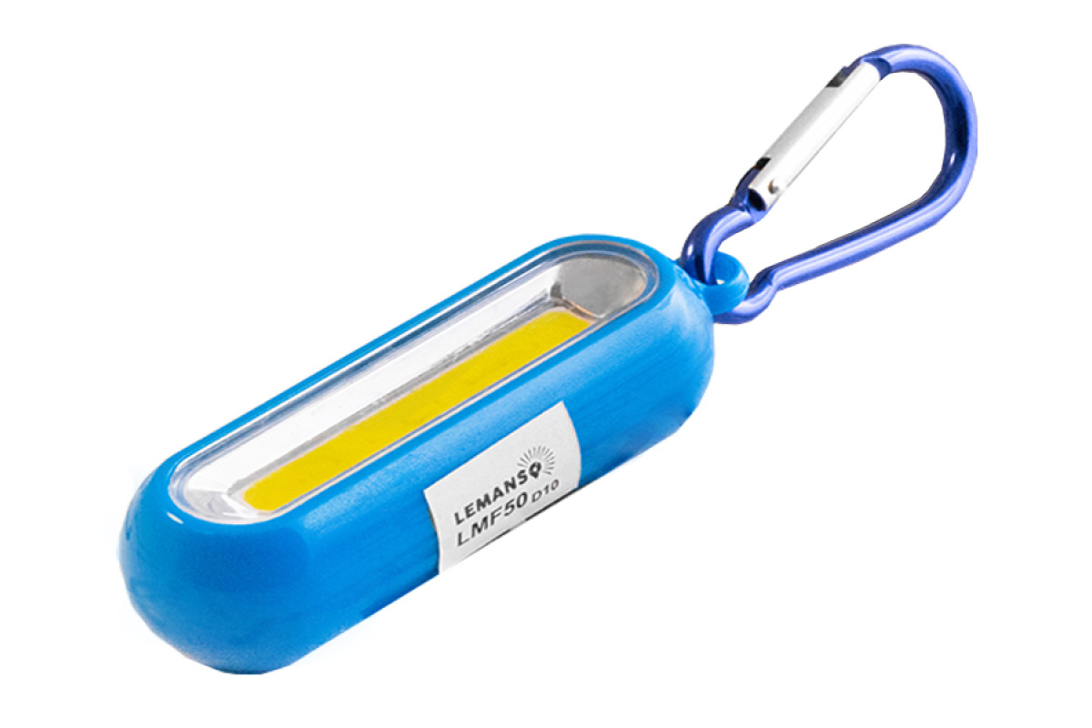 Ліхтарик-брелок cob з карабіном LMF50 пластик синій Лємансо