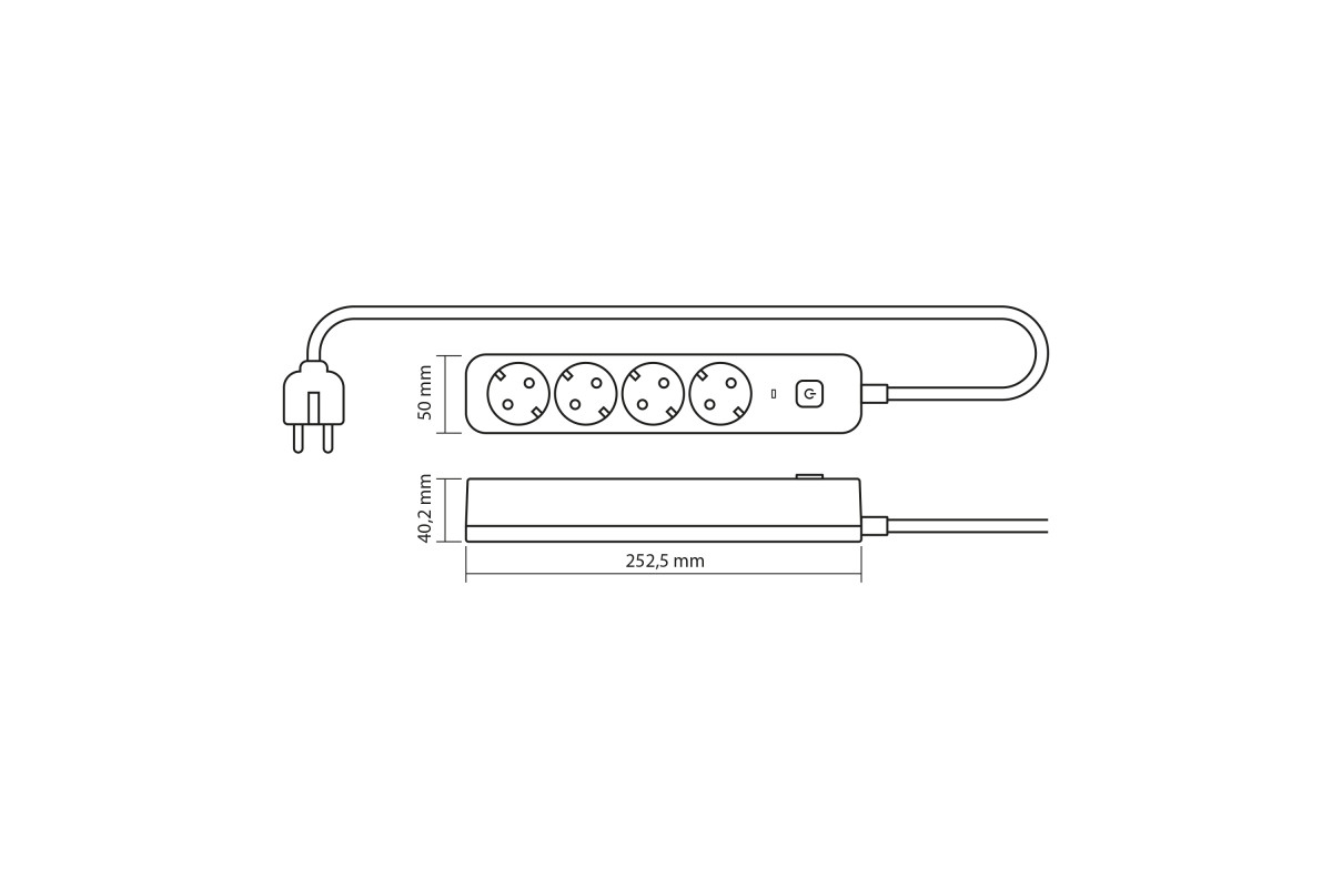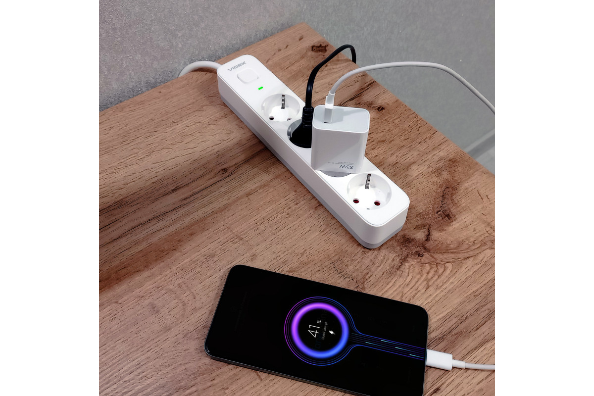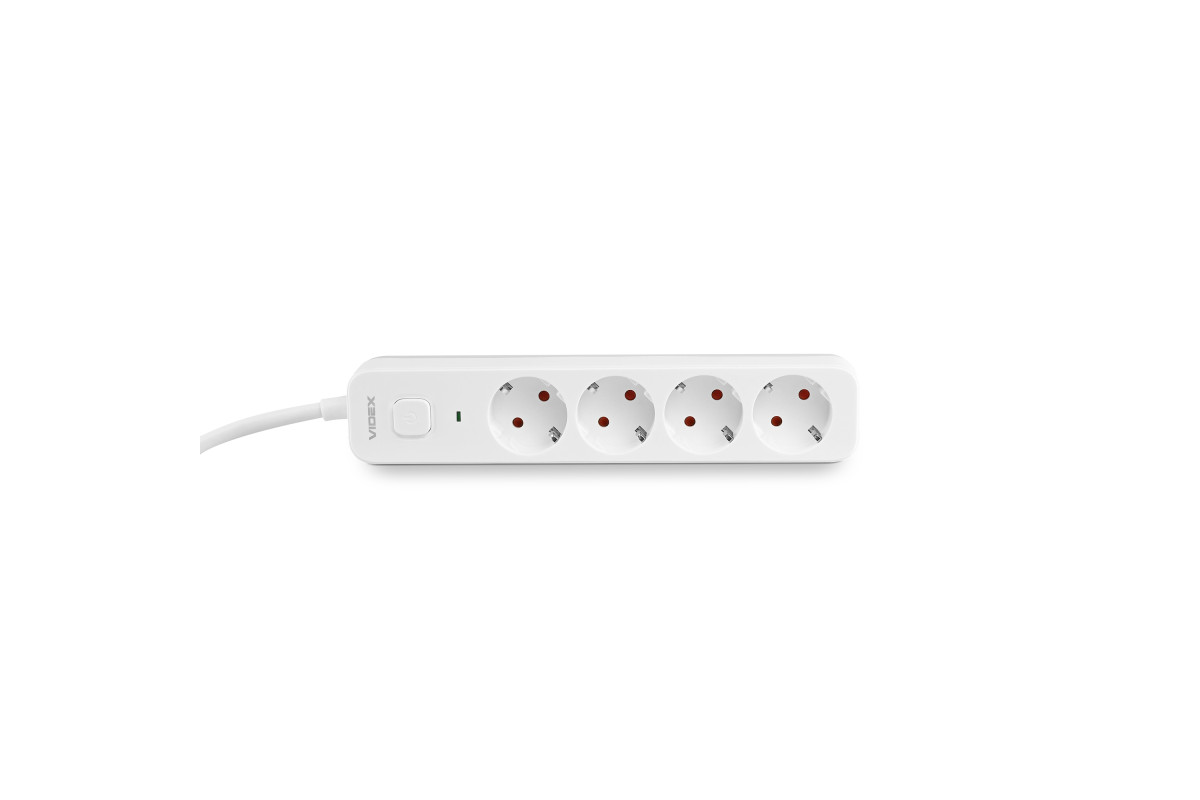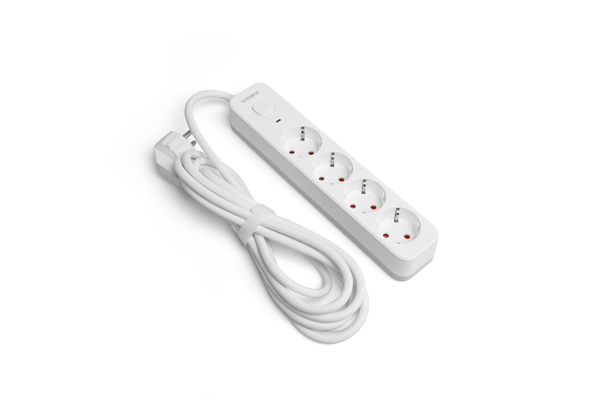 Мережевий подовжувач 4п 3м 1.5мм з/з та кнопкою White ONCORD (VF-PD43G-W) VIDEX