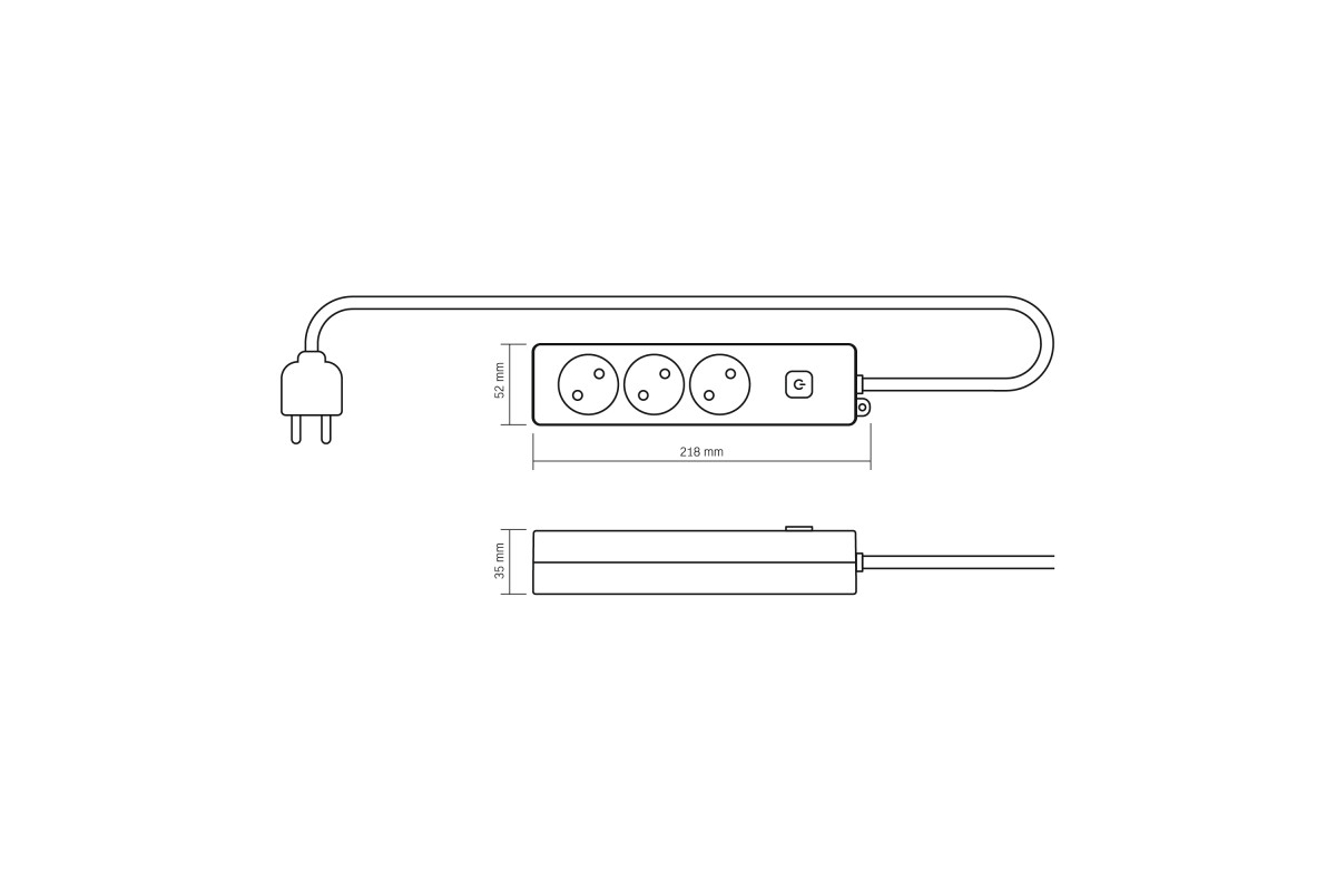 Мережевий подовжувач VIDEX ONCORD б/з 3п 3м з кнопкою White