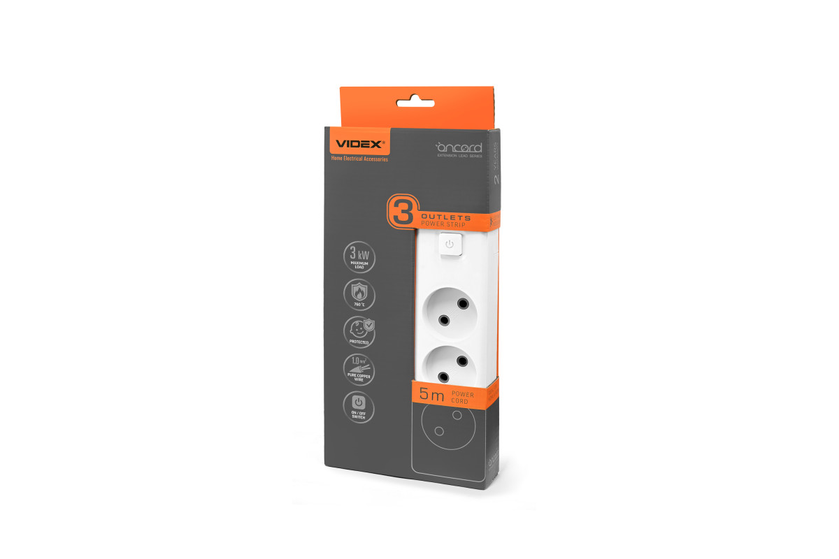 ❓ Як замовити Мережевий подовжувач VIDEX ONCORD б/з 3п 5м з кнопкою White з доставкою?