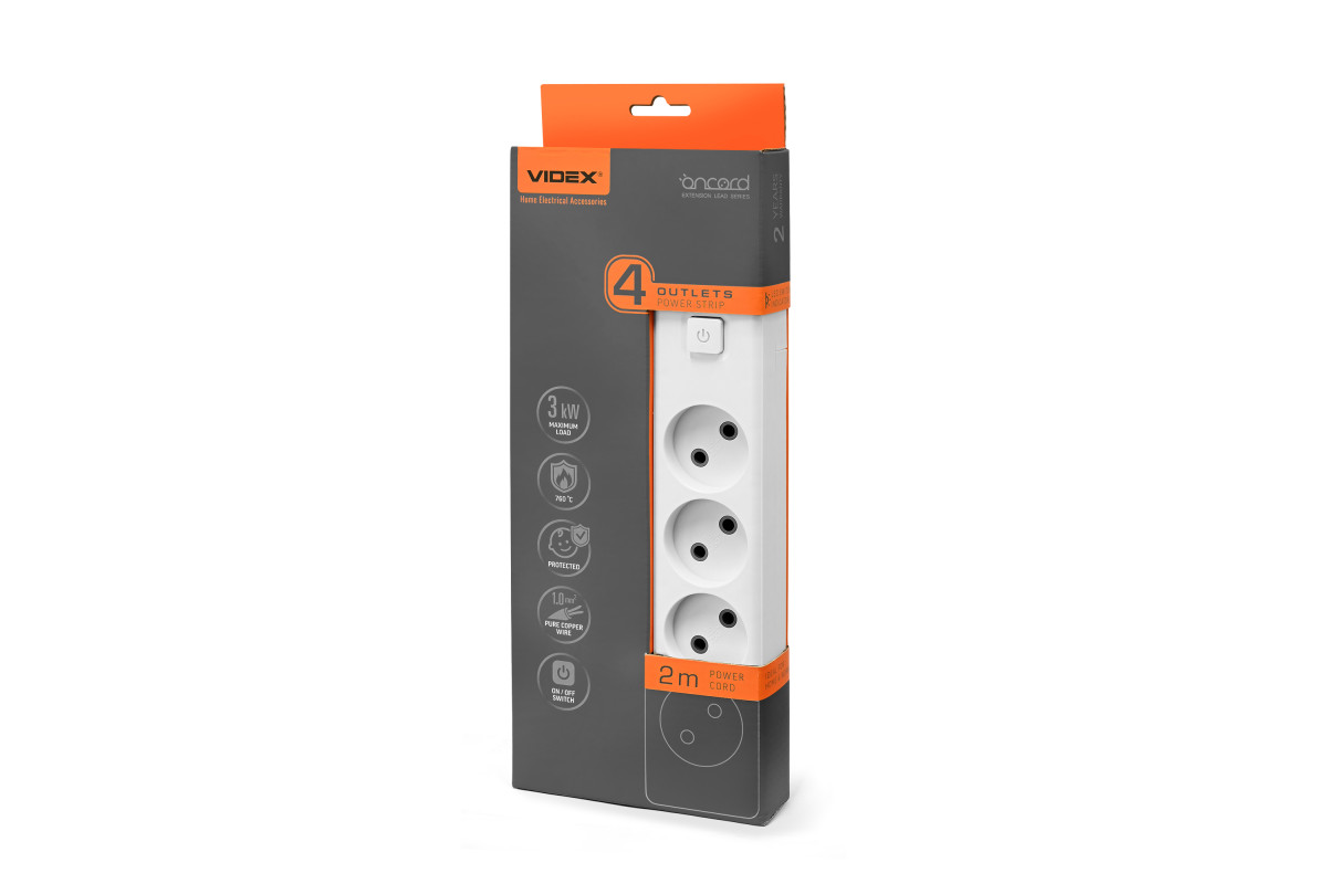 ❓ Як замовити Мережевий подовжувач VIDEX ONCORD б/з 4п 2м з кнопкою White з доставкою?