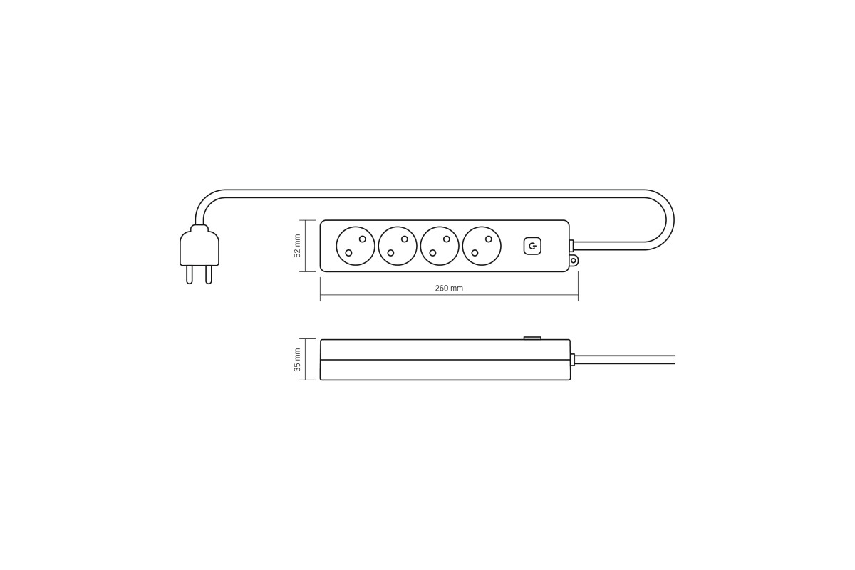 Мережевий подовжувач VIDEX ONCORD б/з 4п 5м з кнопкою White