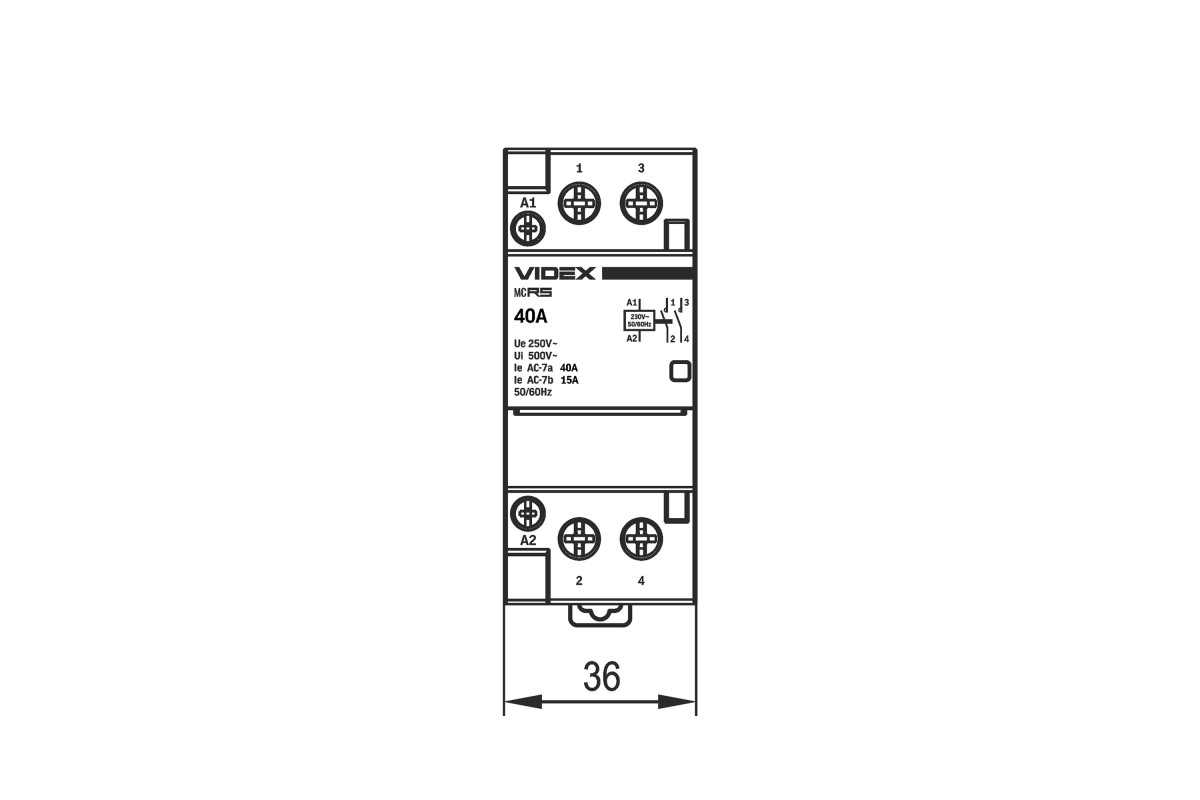 Модульний контактор 2п 40А 2НВ VF-RS-MC2O-40 VIDEX RESIST