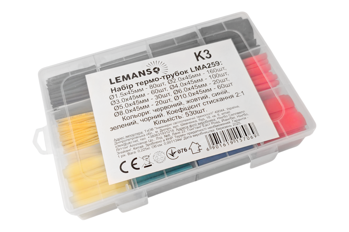 ❓ Хто виробник Набір термо-трубок в коробці 45мм 530шт коеф. усадки 2:1/LMA259 Лємансо?
