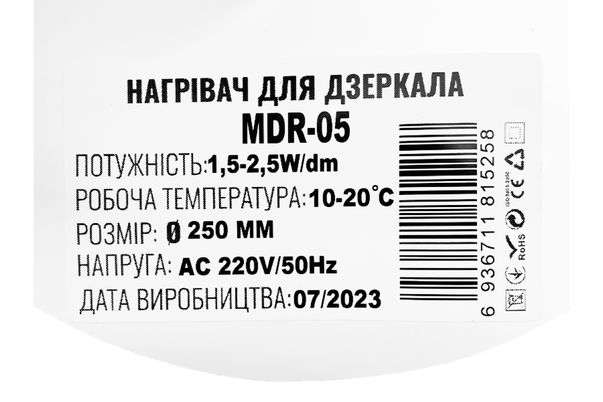 ❓ Хто виробник Нагрівальна плівка кругла для дзеркал (антизапотівання) MDR-05 250мм 220-240V?