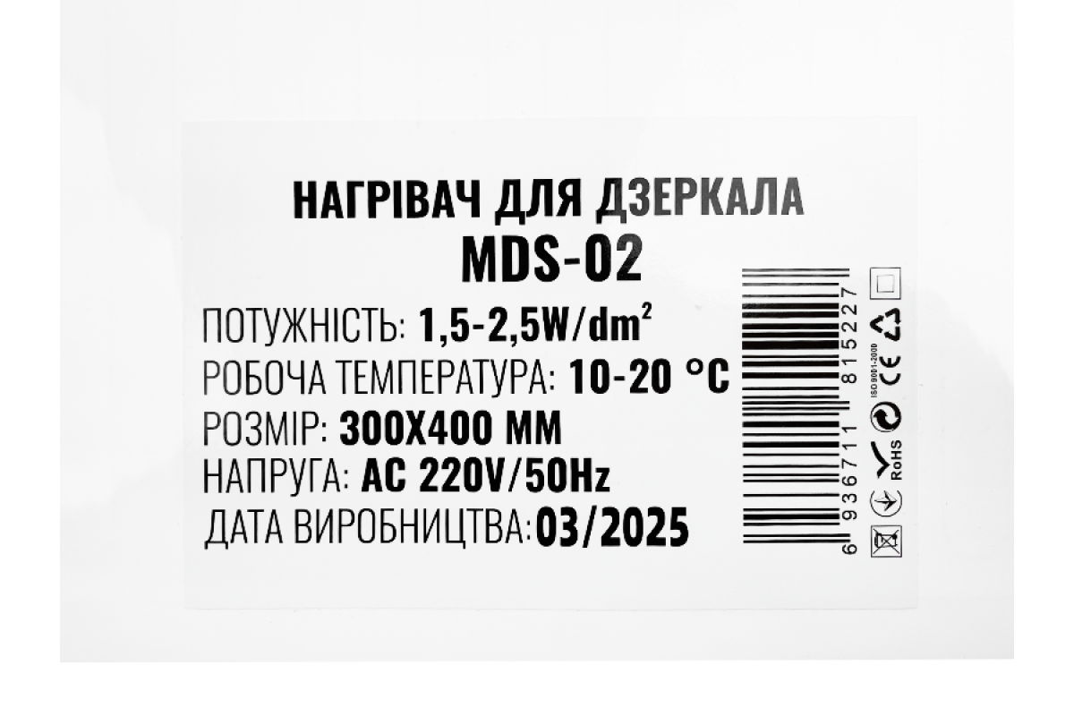 ❓ Яка ціна на Нагрівальна плівка прямокутна для дзеркал (антизапотівання) MDS-02 300*400мм 220-240V у 2025 році?