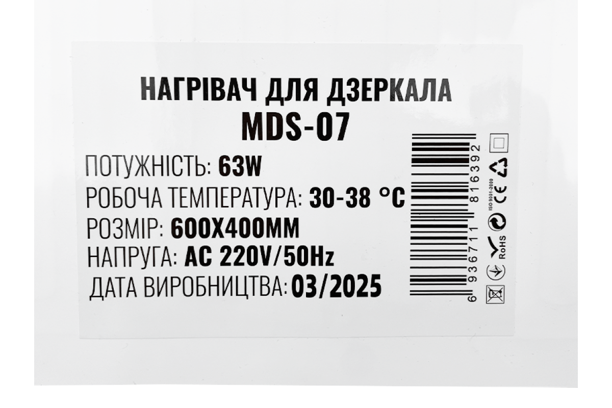 ❓ Яка ціна на Нагрівальна плівка прямокутна для дзеркал (антизапотівання) MDS-07 400*600мм 220-240V у 2025 році?