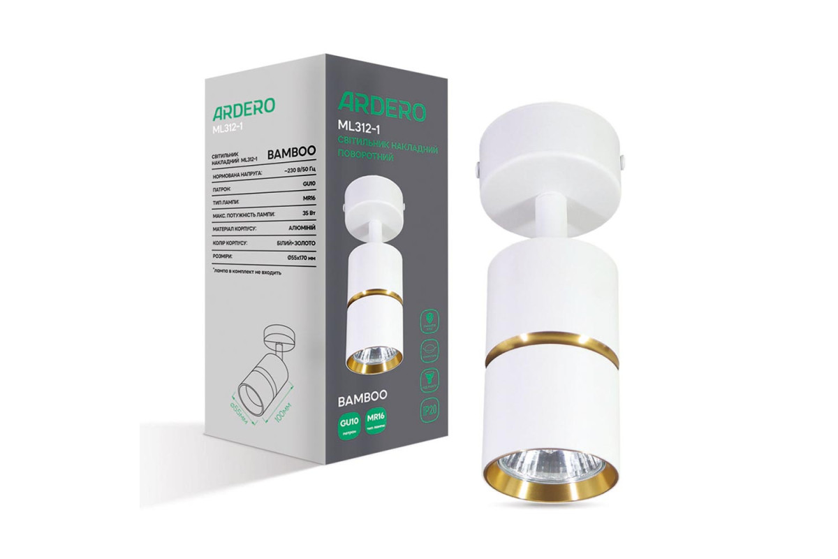 ❓ Хто виробник Накладний поворотний світильник Ardero ML312-1 BAMBOO під лампу білий золото?
