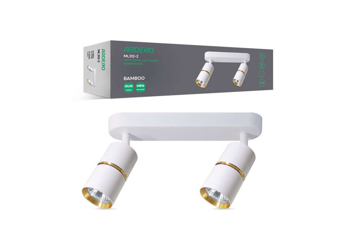 ❓ Хто виробник Накладний поворотний світильник Ardero ML312-2 BAMBOO під лампу білий золото?