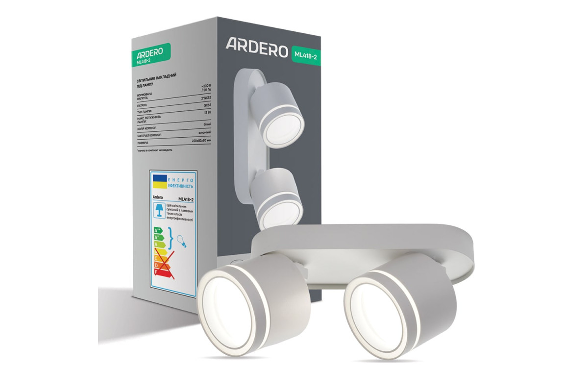 ❓ Хто виробник Накладний поворотний світильник Ardero ML418-2 під лампу білий?