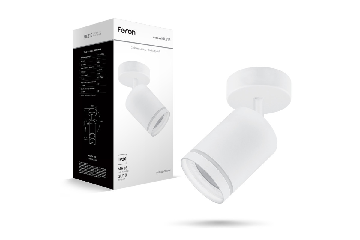 ❓ Як замовити Накладний поворотний світильник Feron ML318 під лампу білий з доставкою?