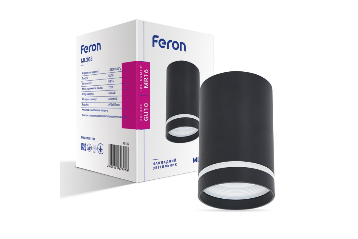 ❓ Як замовити Накладний світильник Feron ML308 під лампу чорний з доставкою?