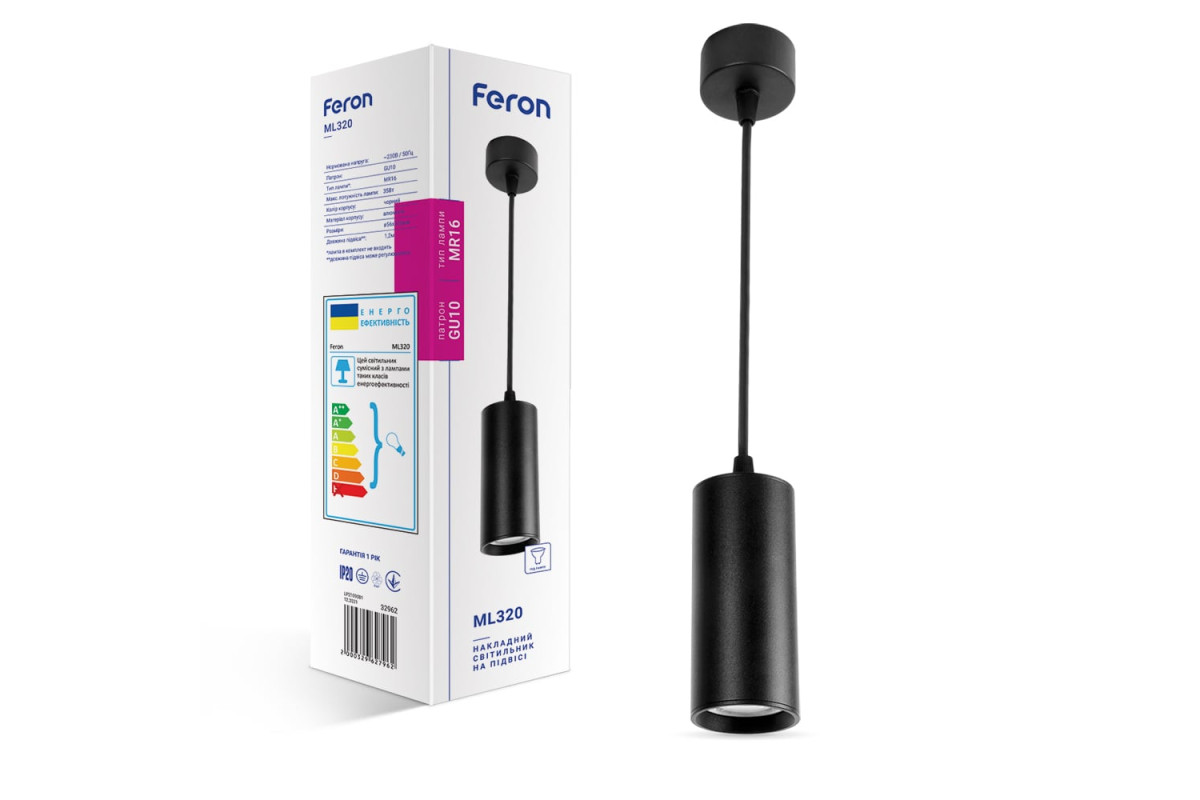 ❓ Як замовити Накладний світильник Feron ML320 під лампу на підвісі чорний з доставкою?