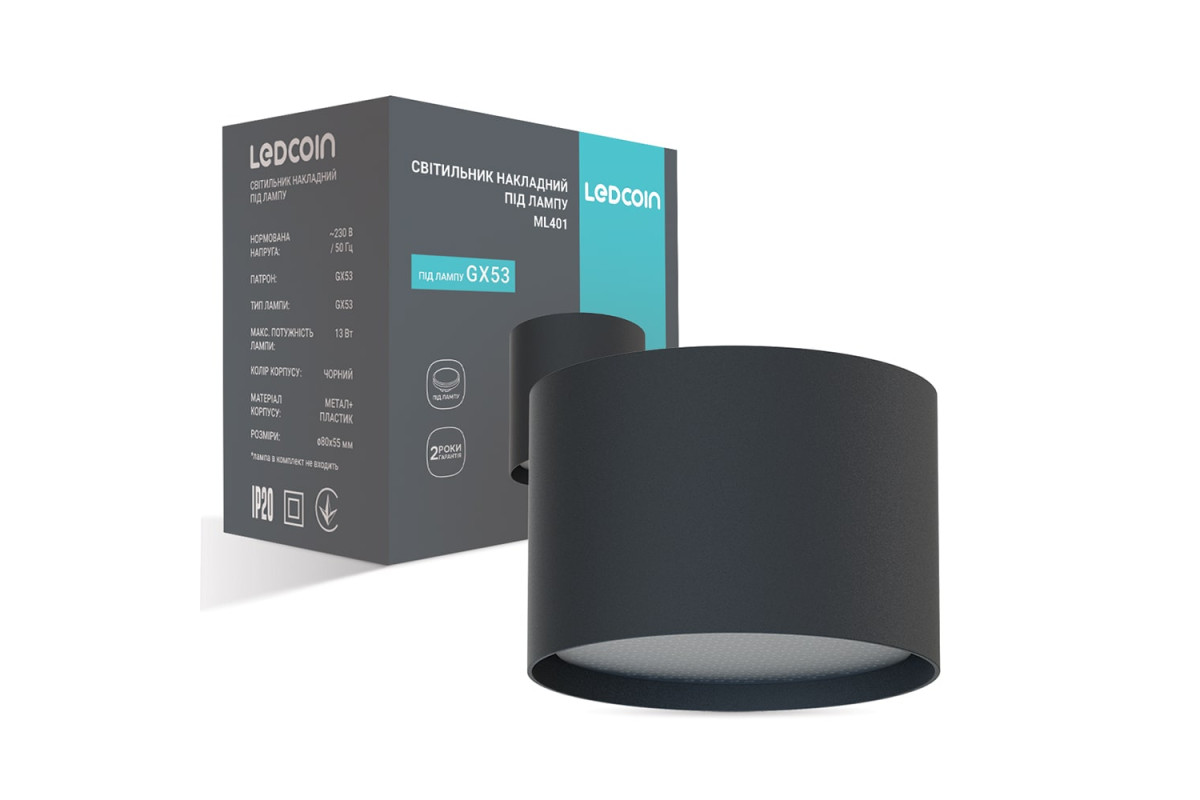 ❓ Хто виробник Накладний світильник Ledcoin ML401 під лампу чорний?