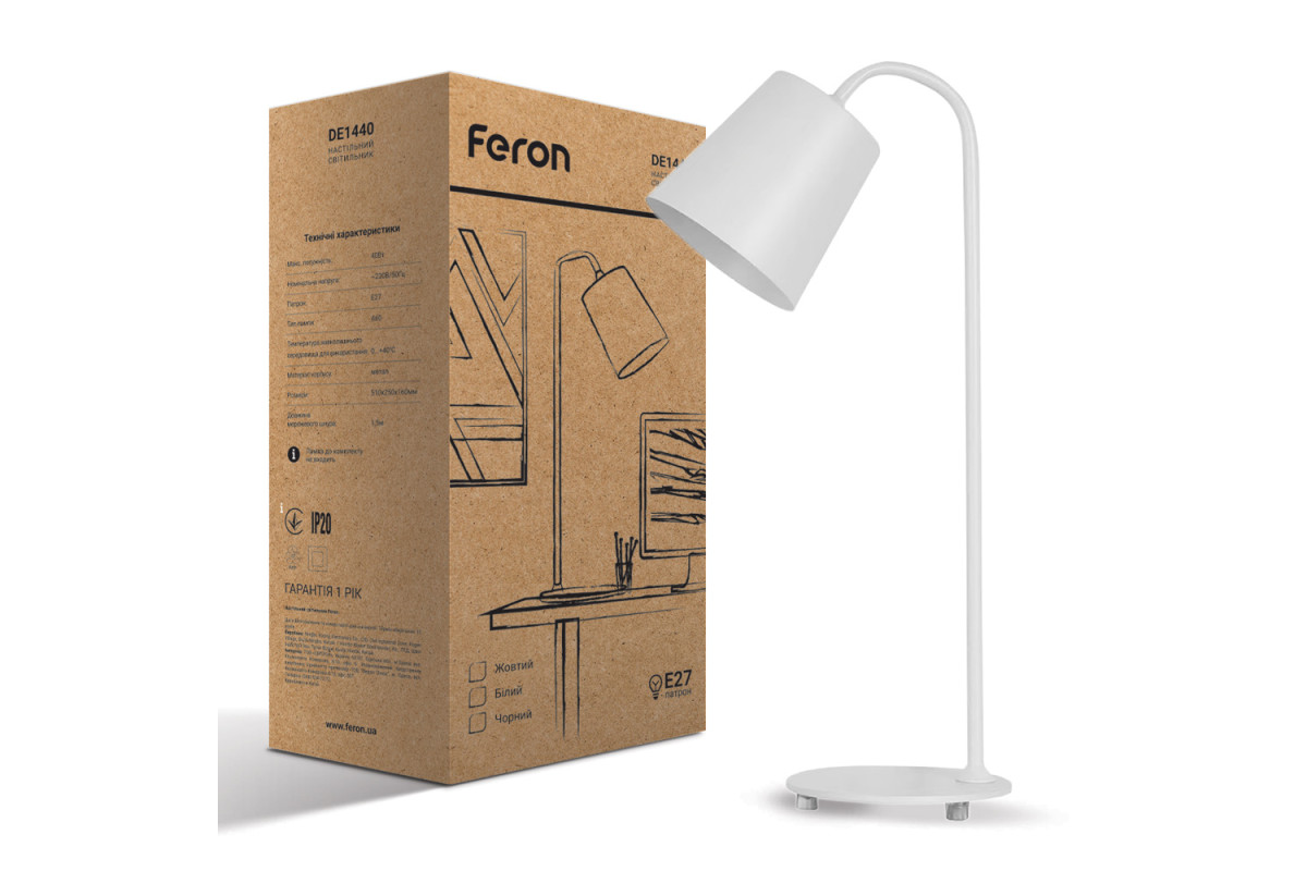 ❓ Як замовити Настільний світильник Feron DE1440 під лампу білий з доставкою?