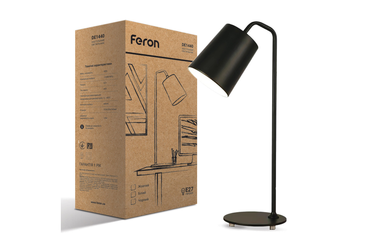 ❓ Як замовити Настільний світильник Feron DE1440 під лампу чорний з доставкою?