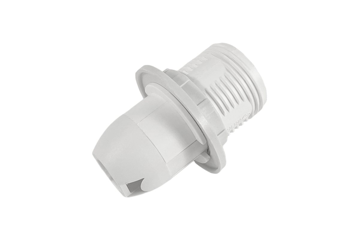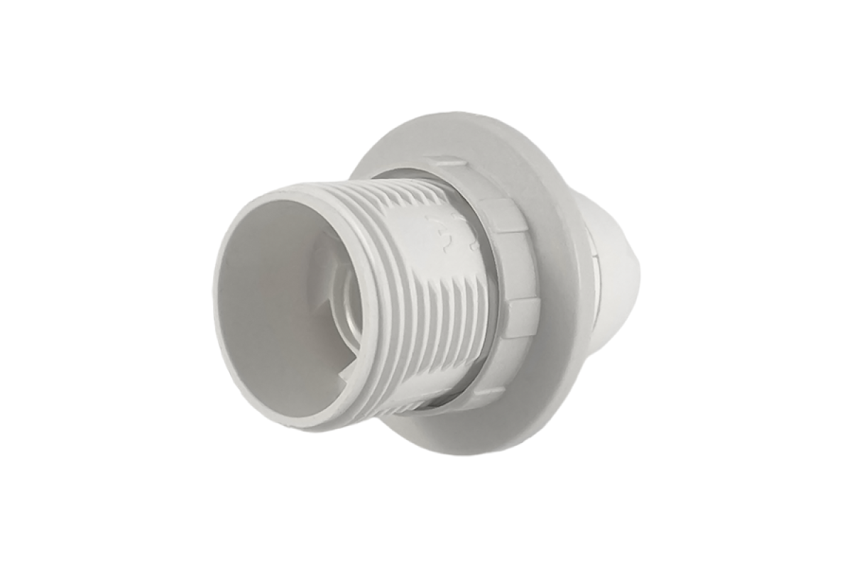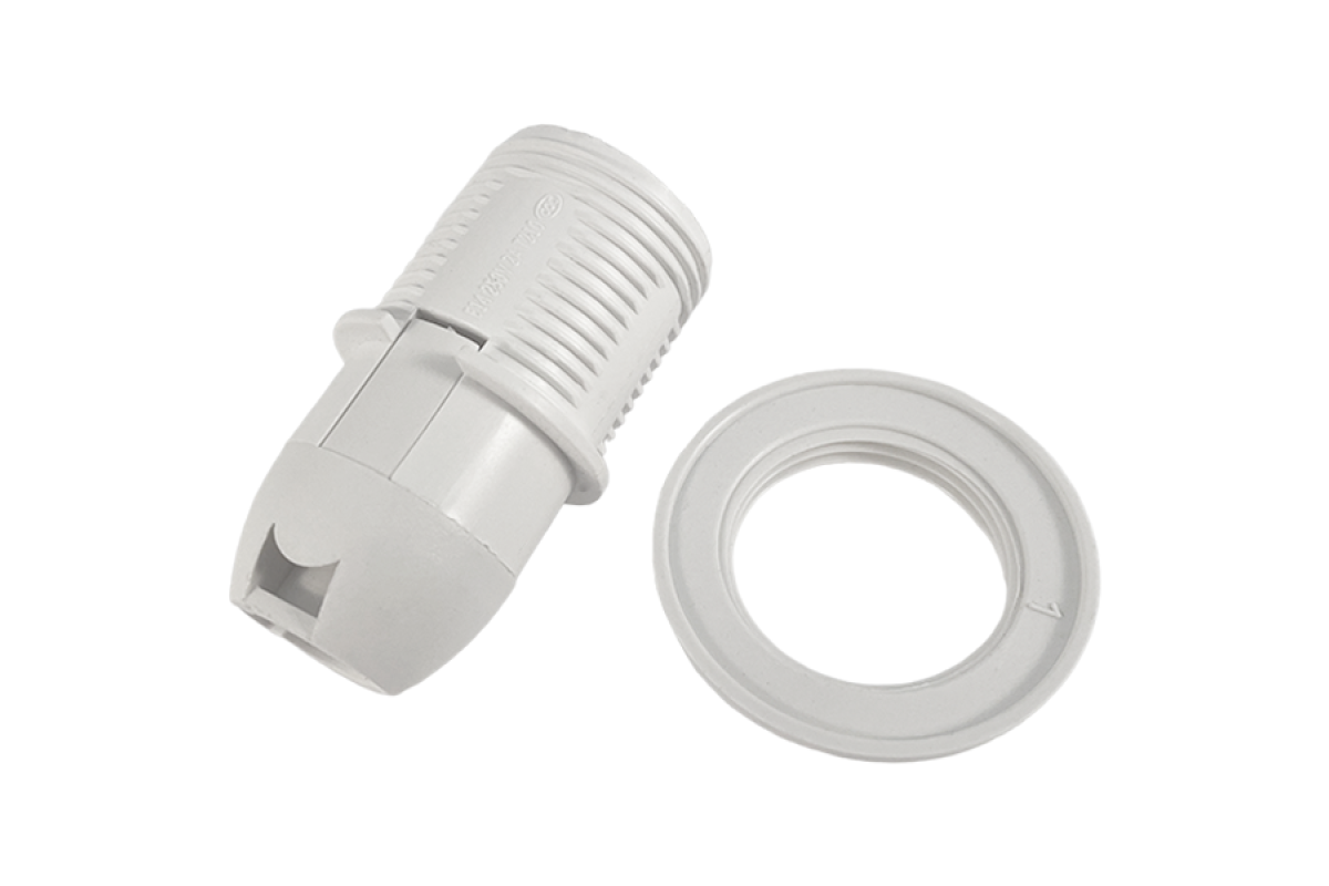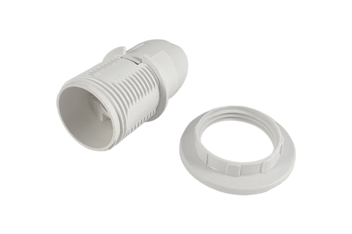Патрон Е14 пластиковий/різьба-кільце+стопорне кільце/білий LM2502