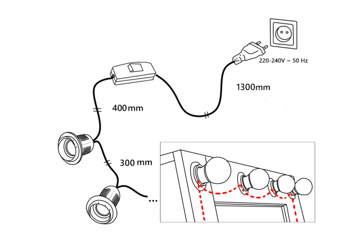 Підсвітка гримувального дзеркала світлодіодна врізна 220V 10шт E14 ручний вимикач, білий колір LEDUA
