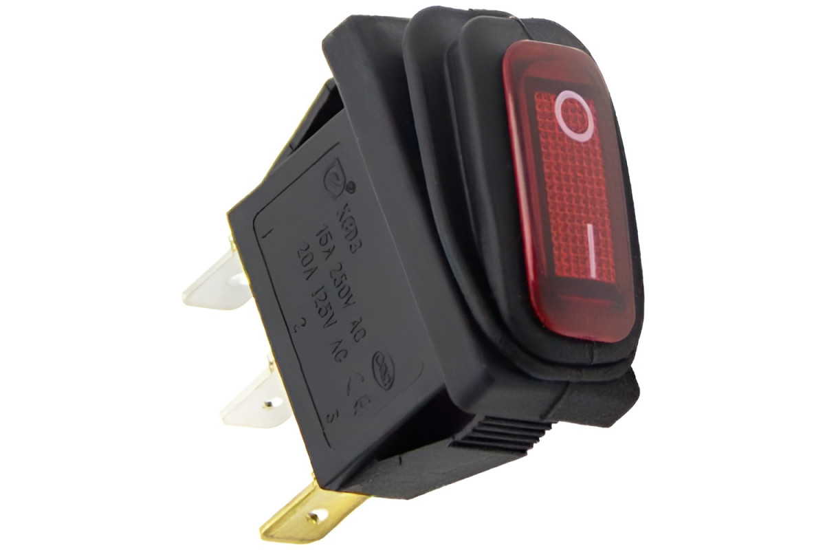 Перемикач Lemanso LSW36 3PIN червоний із фікс. та з підсв. IP45 ON-OFF / KCD3-101NW 15A 250VAC кратно 25 штук
