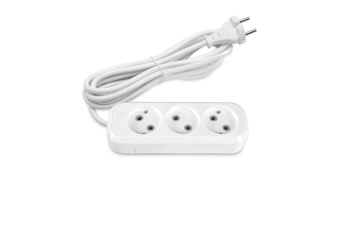 Подовжувач мережевий без заземлення 3 гнізда 3м (2x1мм) білий TITANUM STANDARD