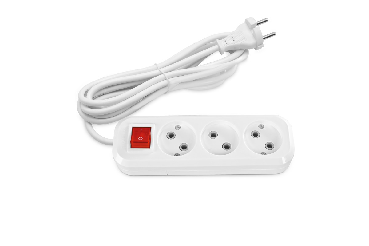 Подовжувач мережевий без заземлення 3 гнізда з кнопкою 3м (2x1мм) білий TITANUM STANDARD