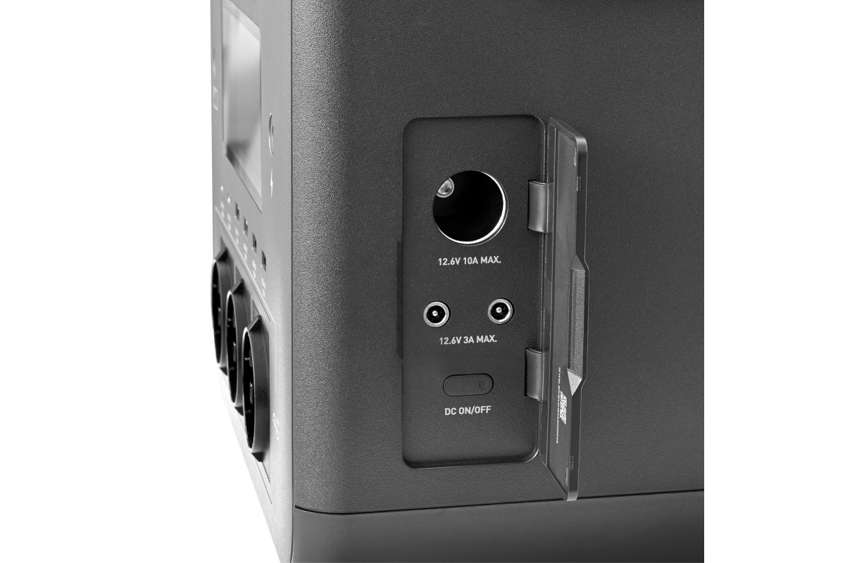 - Активуйте виходи постійного струму натиснувши перемикач виходів DC (DC ON/OFF), яка розташована збоку від екрану за захисною кришкою.