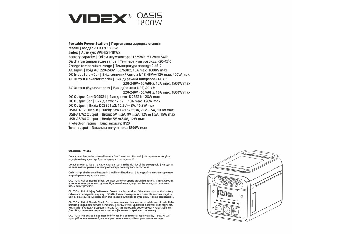 ❓ Хто виробник Портативна зарядна станція VIDEX OASIS 1800W 1229Wh (VPS-SG1-1KW8)?