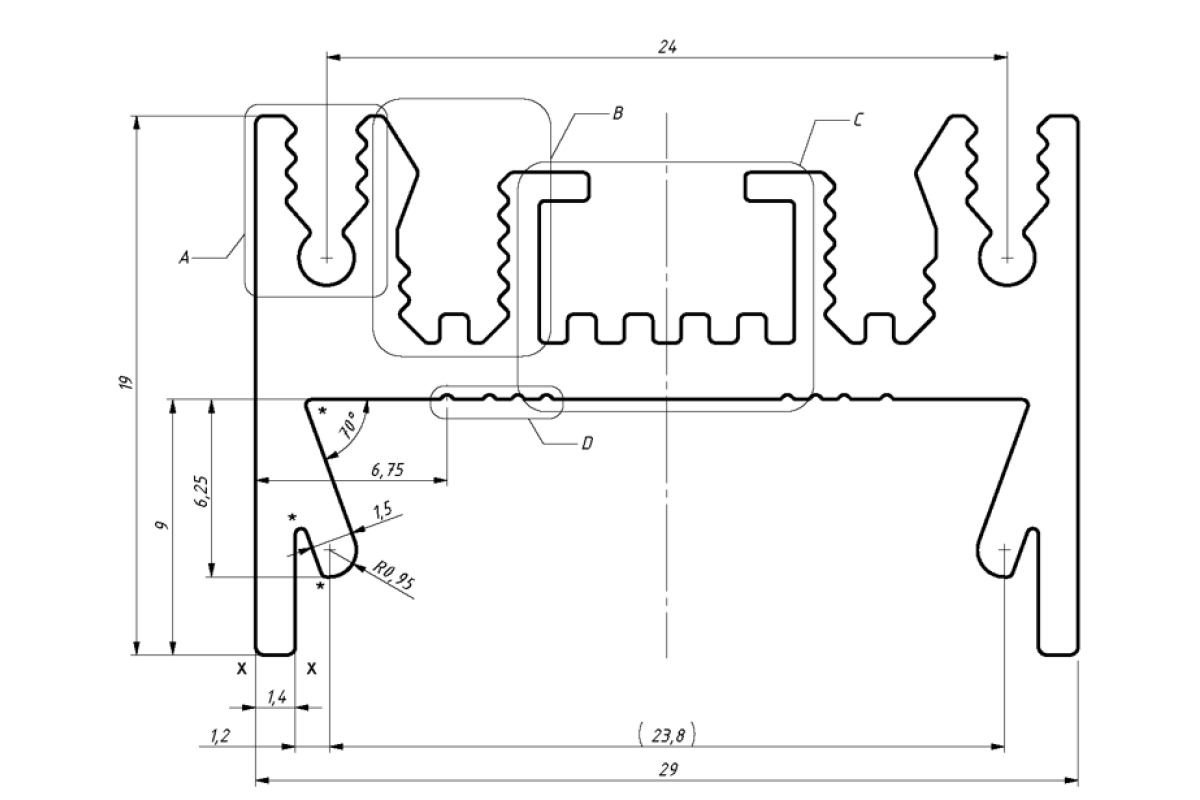Профіль алюмінієвий SVL_LP-SL1929 анод -1м.(в ламелях по 3,05 м) (19х29 мм)