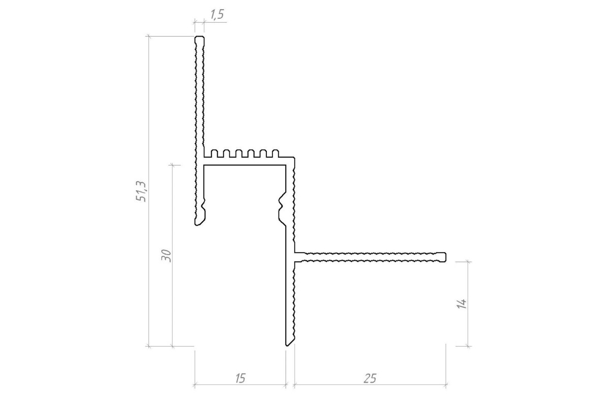 Профіль тіньового шва з LED для стелі 15х30, Аптш 15, 3м.