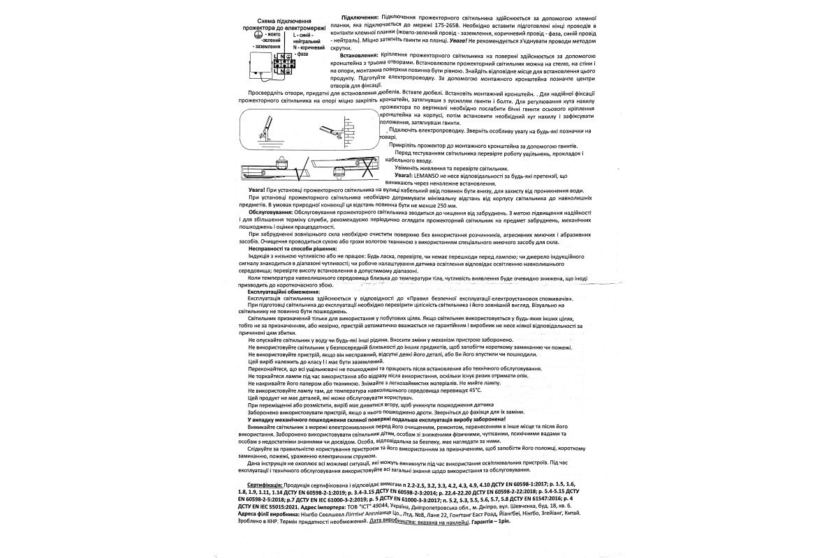 ❓ Хто виробник Прожектор LED 50W 6500K IP54 5000LM 175-265V з датчиком чорний LMPS105-55 "Чарівність" Лємансо?