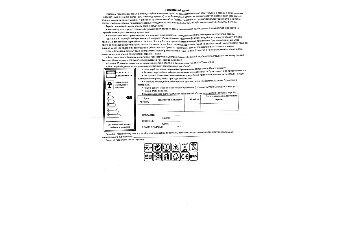 Гарантія:
