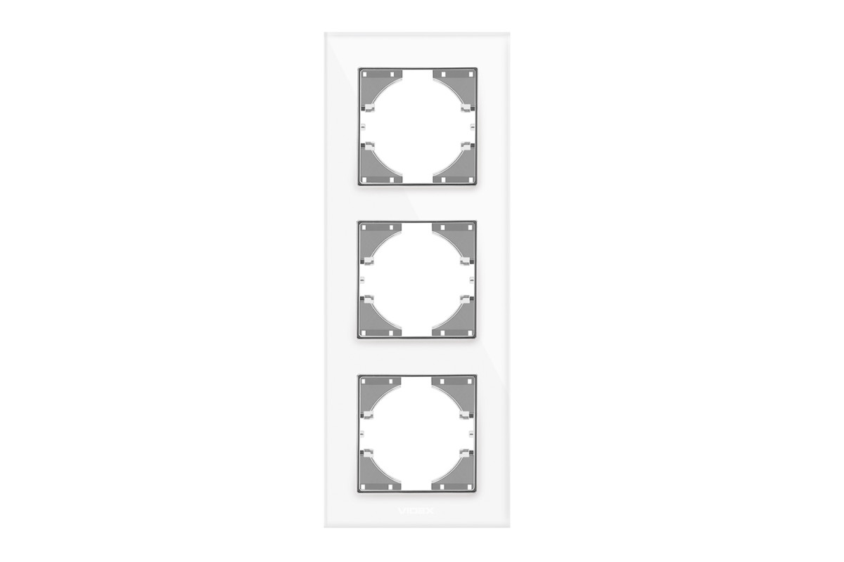 Рамка біле скло на 3 місця вертикальна VIDEX BINERA