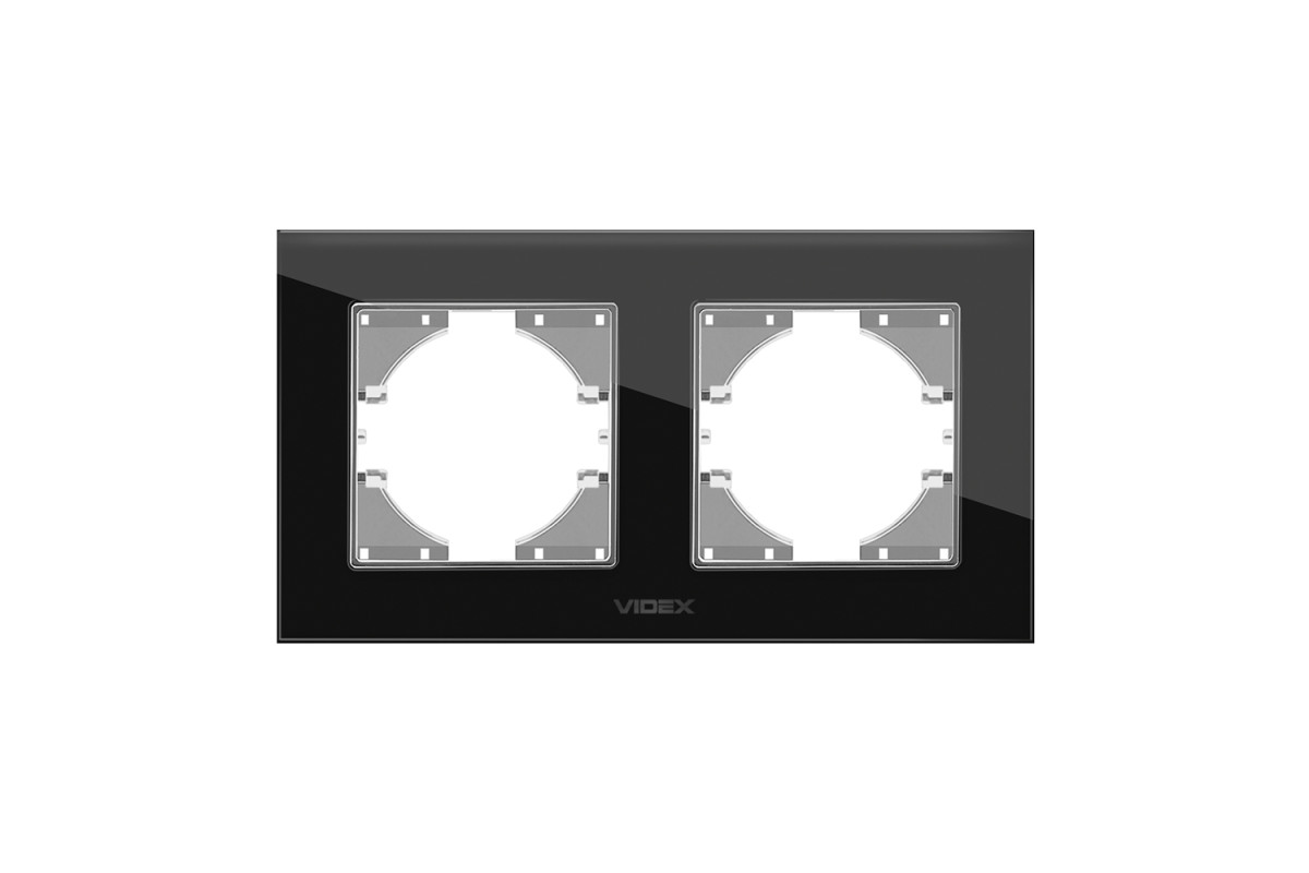 Рамка чорне скло на 2 місця горизонтальна VIDEX BINERA